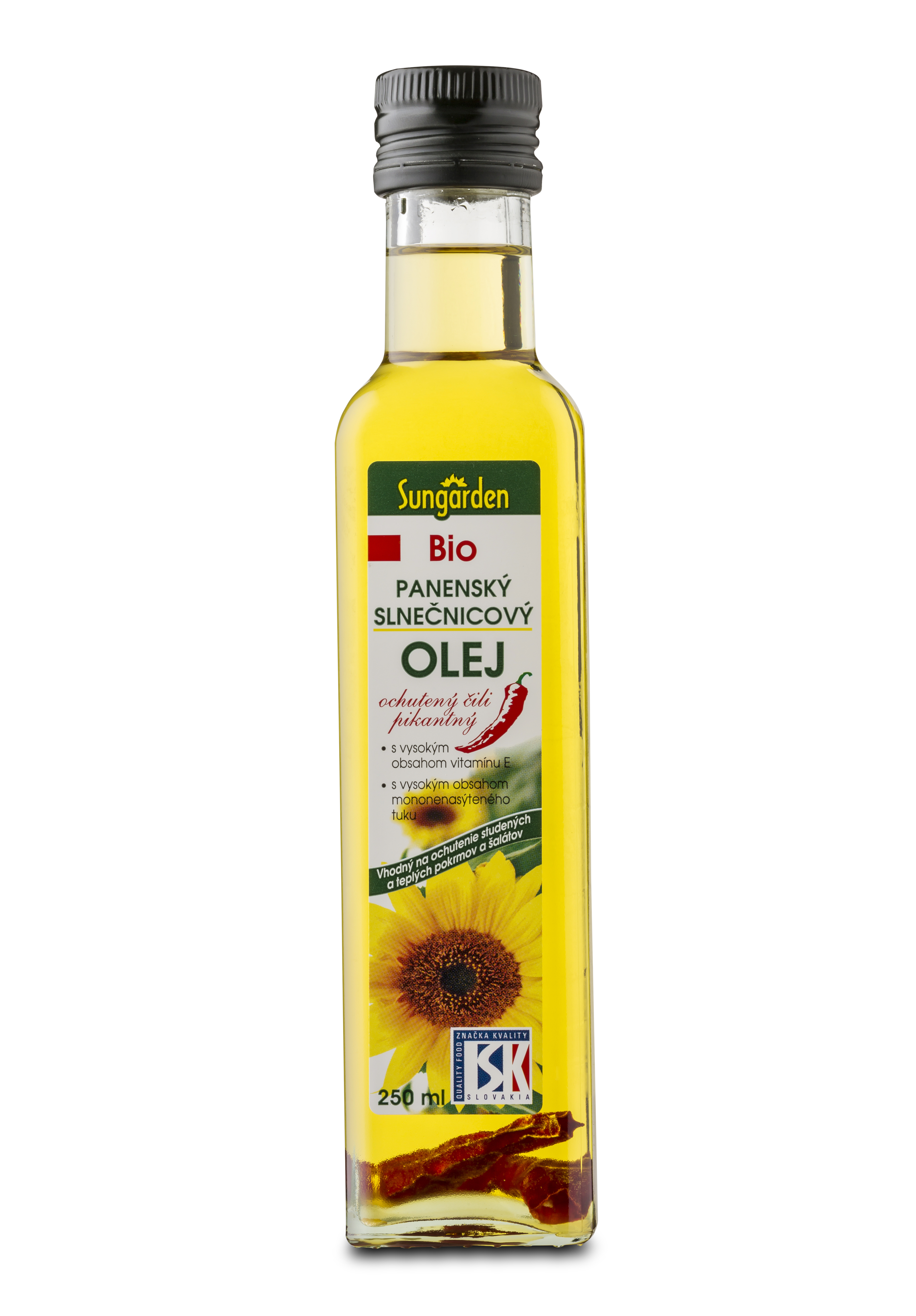 Bio hidegen sajtolt napraforgó étolaj, bio szárított csili paprikával (1%). A csilipaprika hozzáadásával az olaj átveszi a zöldség ízét és aromáját. Tökéletes salátákra, öntetek készítésére, zöldségekhez és húsokhoz.